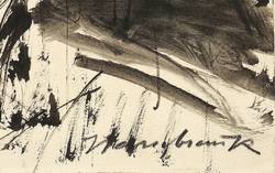 1953. Zeichnung / Pinselzeichnung, in schwarzer Tusche, auf Karton. – Originale Künstlergrafik, von Ernst Hassebrauk. – Unikat. – 47,8 x 64,2 cm (Darstellung / Blatt).