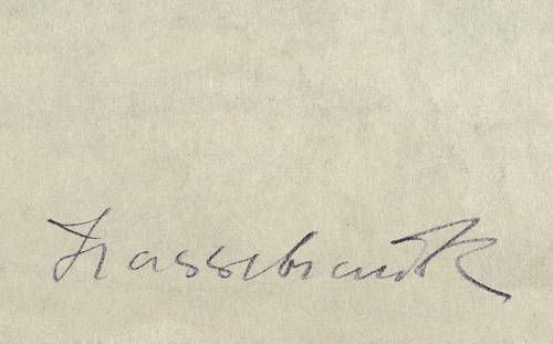 Ernst Hassebrauk (1905 Dresden - 1974 Dresden). Oft fälschlich auch Ernst Hassebrauck. Deutscher Maler und Grafiker. 1925-27 Studium an der Kunstakademie Dresden. 1927-32 Studium der Philosophie und Kunstgeschichte an der Universität Leipzig. Parallel Studium an der Leipziger Kunstakademie bei Willi Geiger. 1947 Professur an der Hochschule für Grafik und Buchkunst Leipzig (HGB). 1949 Entlassung aus dem Lehramt im Zusammenhang mit der Formalismusdebatte. 1958-60 Arbeit an den Staatlichen Kunstsammlungen in Dresden. Pflegte einen in seiner vitalen Farbigkeit und üppigen Strichführung neobarock anmutenden expressiven Realismus. Zahlreiche Ausstellungen und Publikationen.