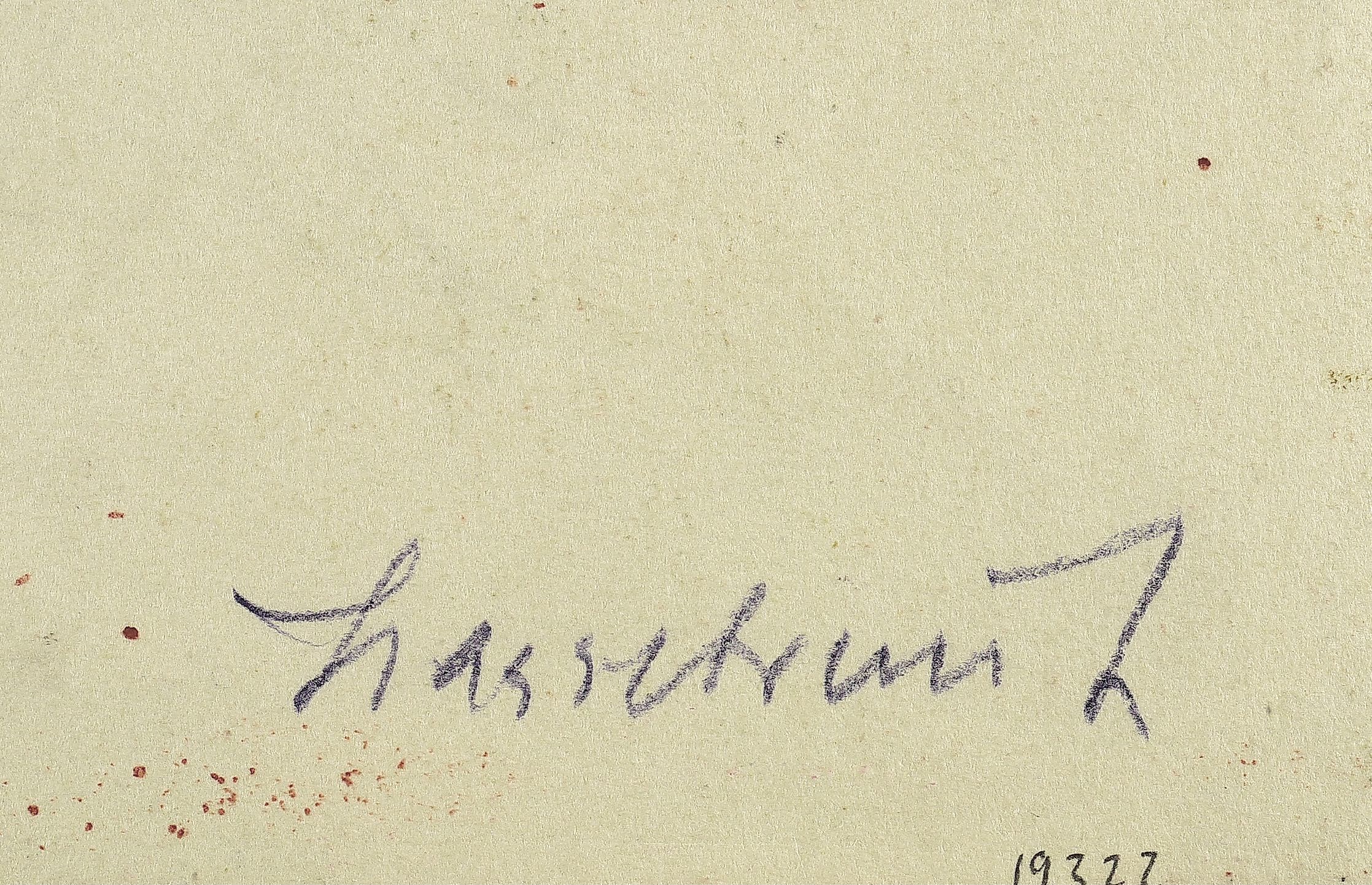 Verso in Kopierstift signiert: ″hassebrauk″. – Tadellos. Im Passepartout montiert. Sehr guter Zustand.