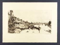 1960/1985. Radierung / Kaltnadel, in Schwarz, auf gelblichem Hahnemühle-Bütten. – Originale Künstlergrafik, von Ernst Hassebrauk. – Auflage 13 Exemplare. – 23,0 x 42,2 cm (Darstellung / Platte), 40 x 53 cm (Blatt).
