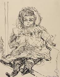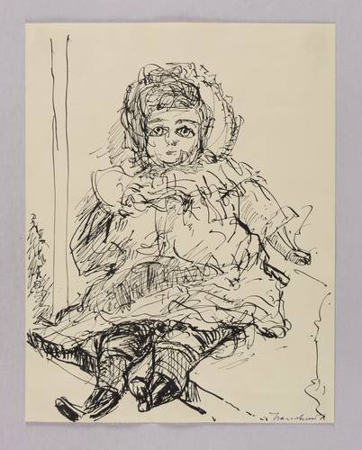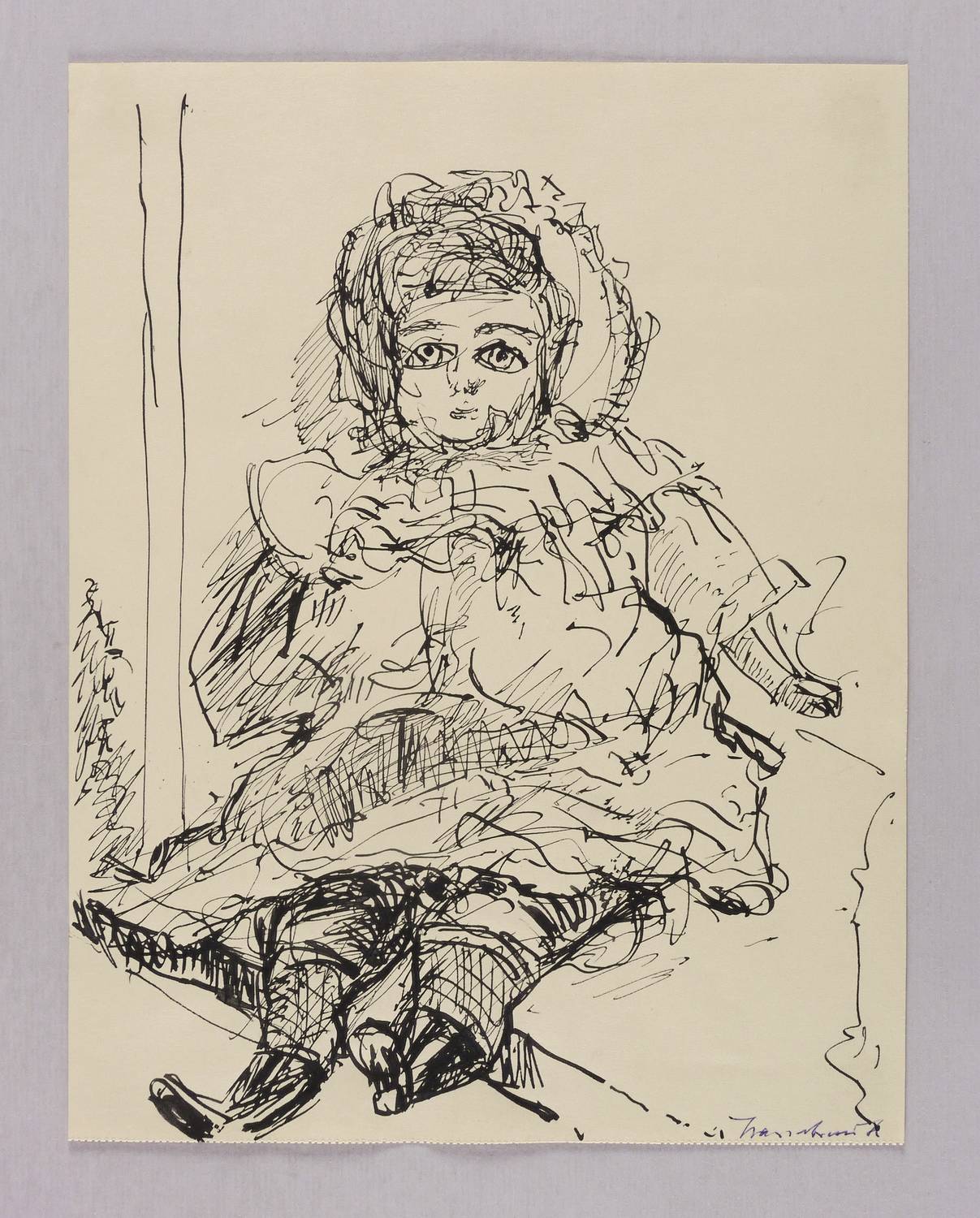 Rechts unten in schwarzer Feder signiert: ″hassebrauk″ Verso in Bleistift nochmals signiert: ″hassebrauk″. Dazu weiter bezeichnet: ″12. Puppe / Mus. f. Volksk.″ – Provenienz: Sammlung Gerlint Söder & Erhard Frommhold, Dresden. – Rückseitig in den oberen Ecken leichte Montagespuren. Sonst makellos. Sehr guter Zustand.
