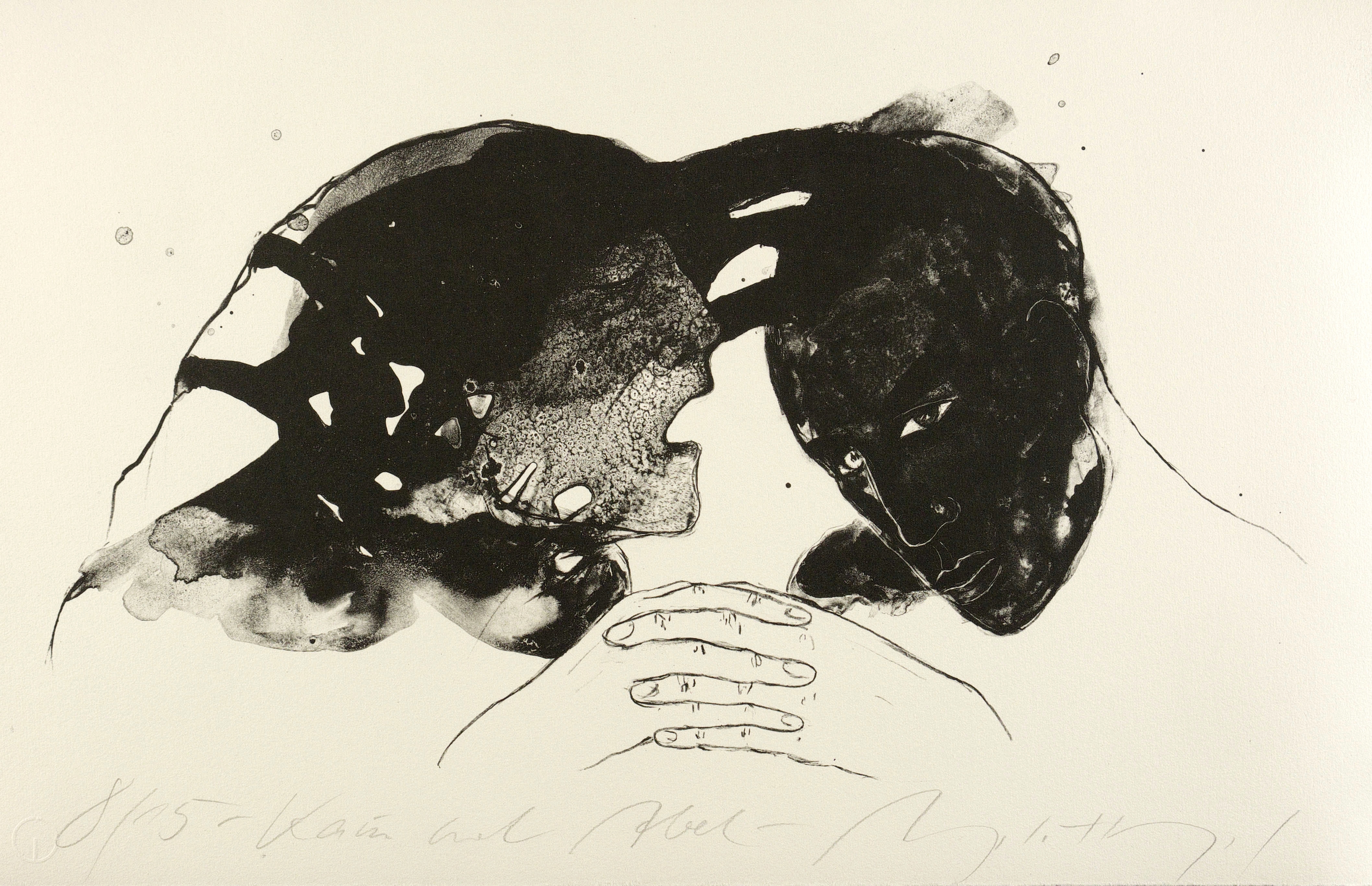 Um 2015. Algrafie / Pinsel- & Kreidealgrafie, in Schwarz, auf Hahnemühle-Bütten. – Originale Künstlergrafik, von Angela Hampel. – Auflage Exemplar Nr. 8/15. – 31,0 x 52,0 cm (Darstellung), 37,5 x 58 cm (Blatt).