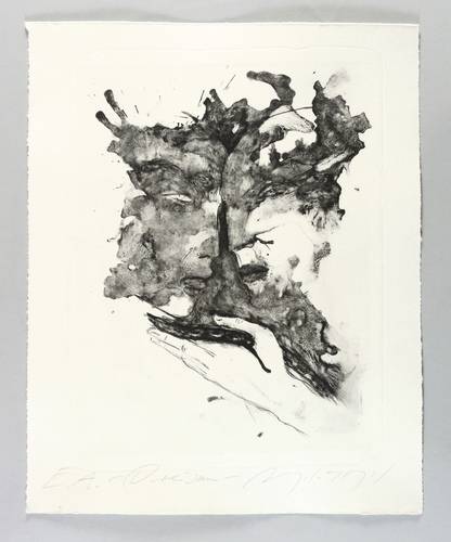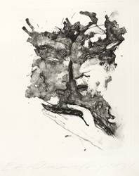 2018. Algrafie / Pinsel- & Kreidealgrafie, in Schwarz, auf Hahnemühle-Bütten. – Originale Künstlergrafik, von Angela Hampel. – Künstlerexemplar (e.a.). – 38,5 x 29,5 cm (Darstellung), 50 x 40 cm (Blatt).