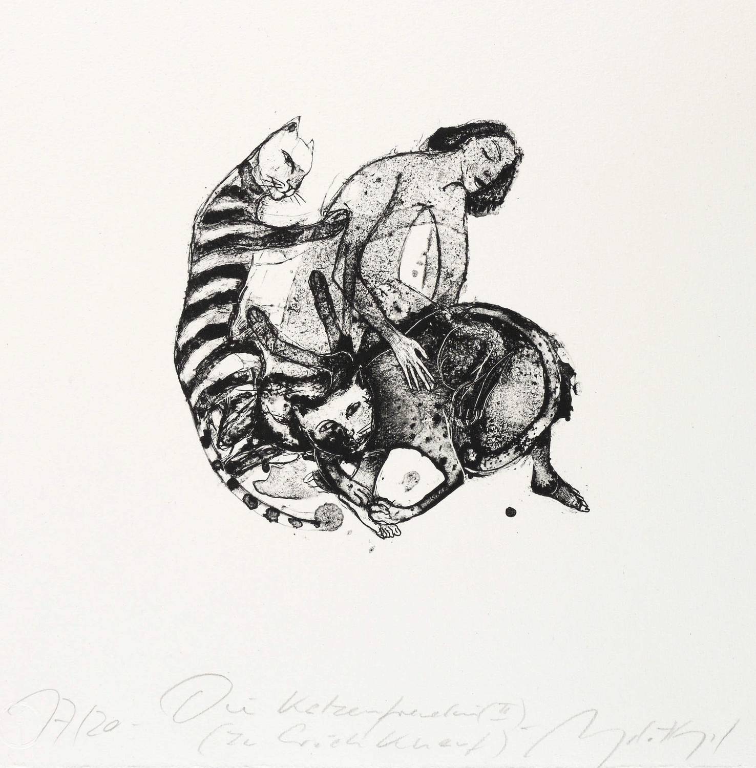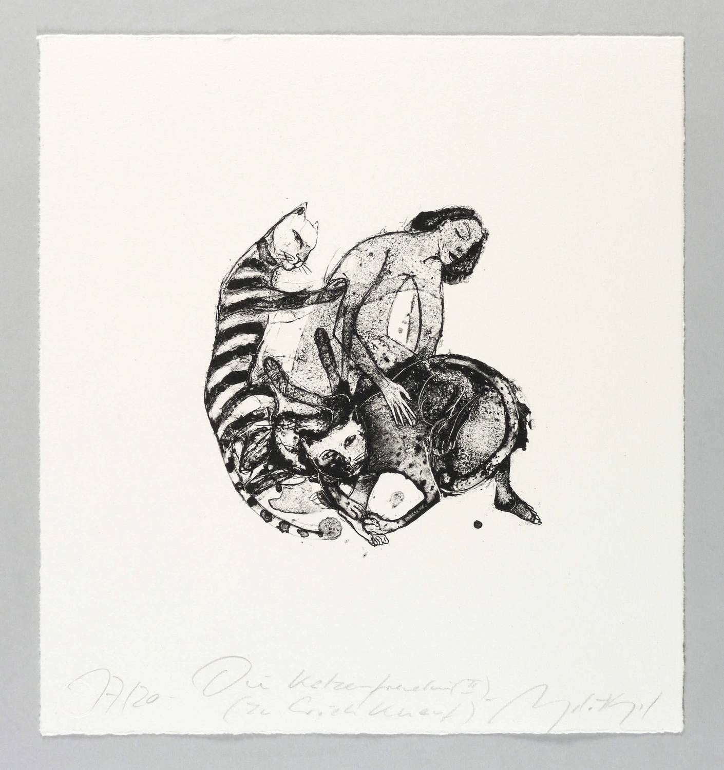 2014. Algrafie / Pinselalgrafie, in Schwarz, auf schwerem Bütten. – Originale Künstlergrafik, von Angela Hampel. – Auflage Exemplar Nr. 17/20. – 17,5 x 16,8 cm (Darstellung / Druckbild), 35 x 32 cm (Blatt).