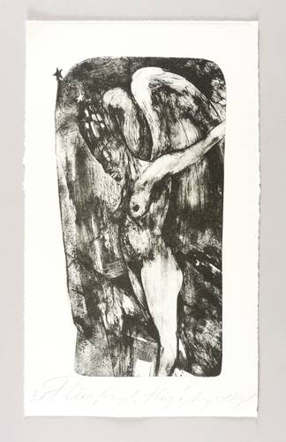 Um 2015. Algrafie / Pinselalgrafie, in Schwarz, auf Hahnemühle-Bütten. – Originale Künstlergrafik, von Angela Hampel. – Künstlerexemplar (e.a.). – 31,0 x 17,0 cm (Darstellung / Druckbild), 38,5 x 22,5 cm (Blatt).