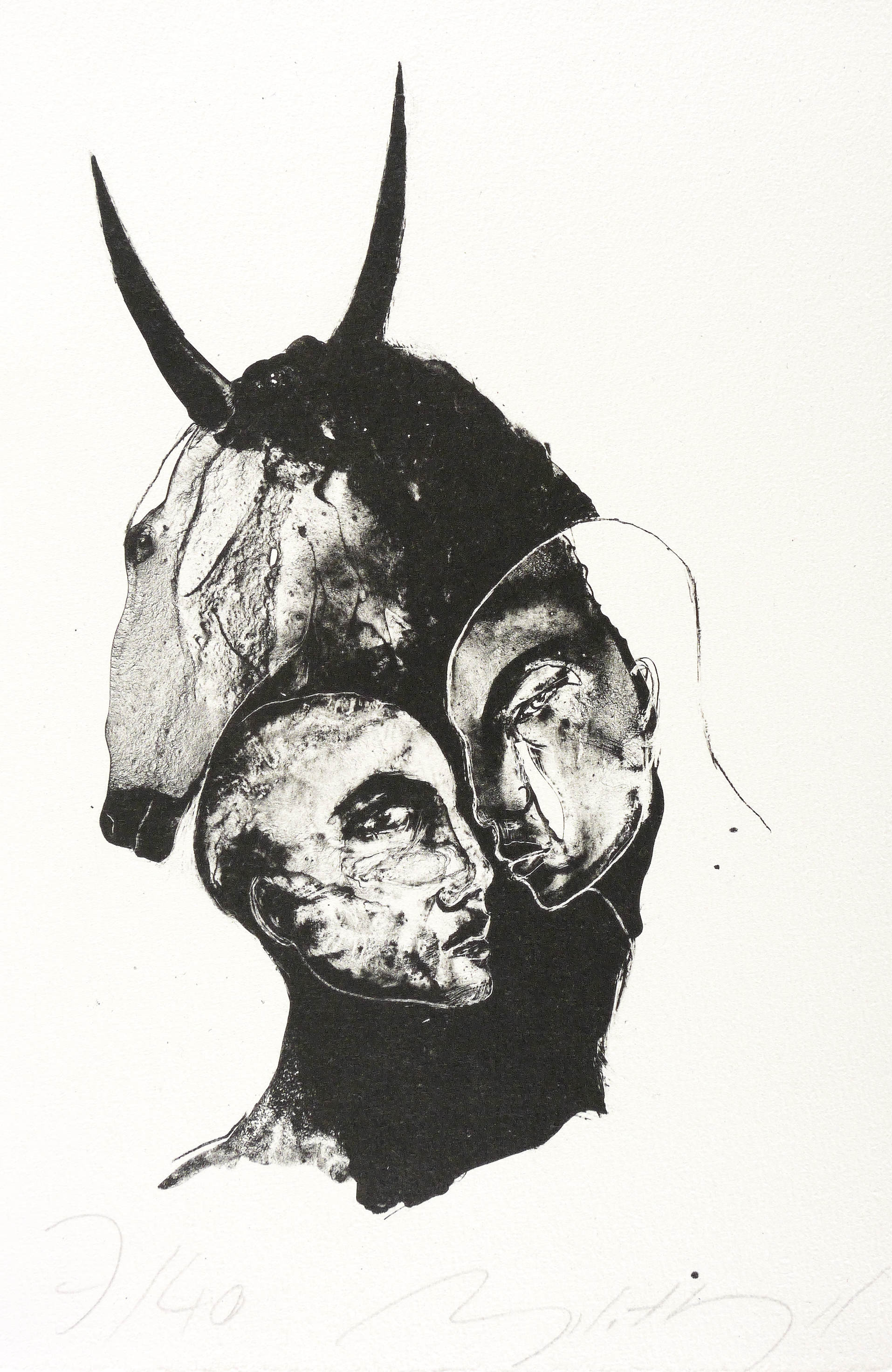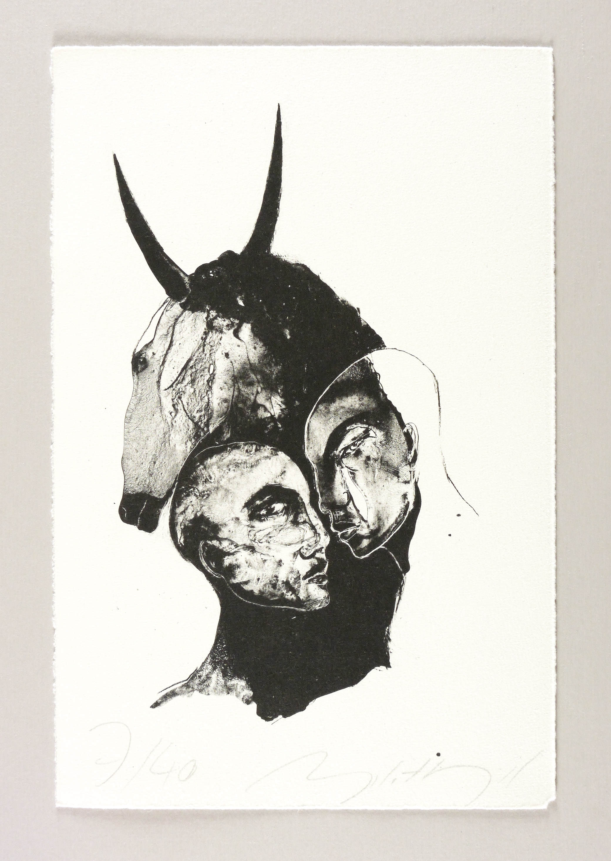 2012. Algrafie, in Schwarz, auf Bütten. – Originale Künstlergrafik, von Angela Hampel. – Auflage Exemplar Nr. 7/40. – 27,5 x 16,5 cm (Darstellung), 33,5 x 22 cm (Blatt).