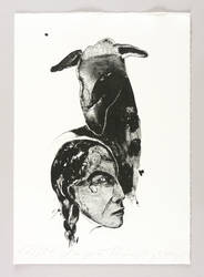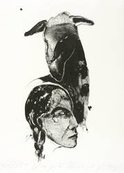 Angela Hampel (*1956 Räckelwitz, lebt und arbeitet in Dresden). Deutsche Malerin und Grafikerin. Lehre und Arbeit als Forstfacharbeiterin. 1977-82 Studium an der HfBK Dresden bei Jutta Damme und D. Büttner. Danach freischaffend. Mitbegründerin der Dresdner Sezession '89. Zahlreiche Einzelausstellungen u.a. in der Galerie Döbele. In ihren Figuren einen sich das Weibliche und das Männliche, das Menschliche und das Tierische, kämpfen gegen einander oder um einander - vital, agressiv und zärtlich zugleich.