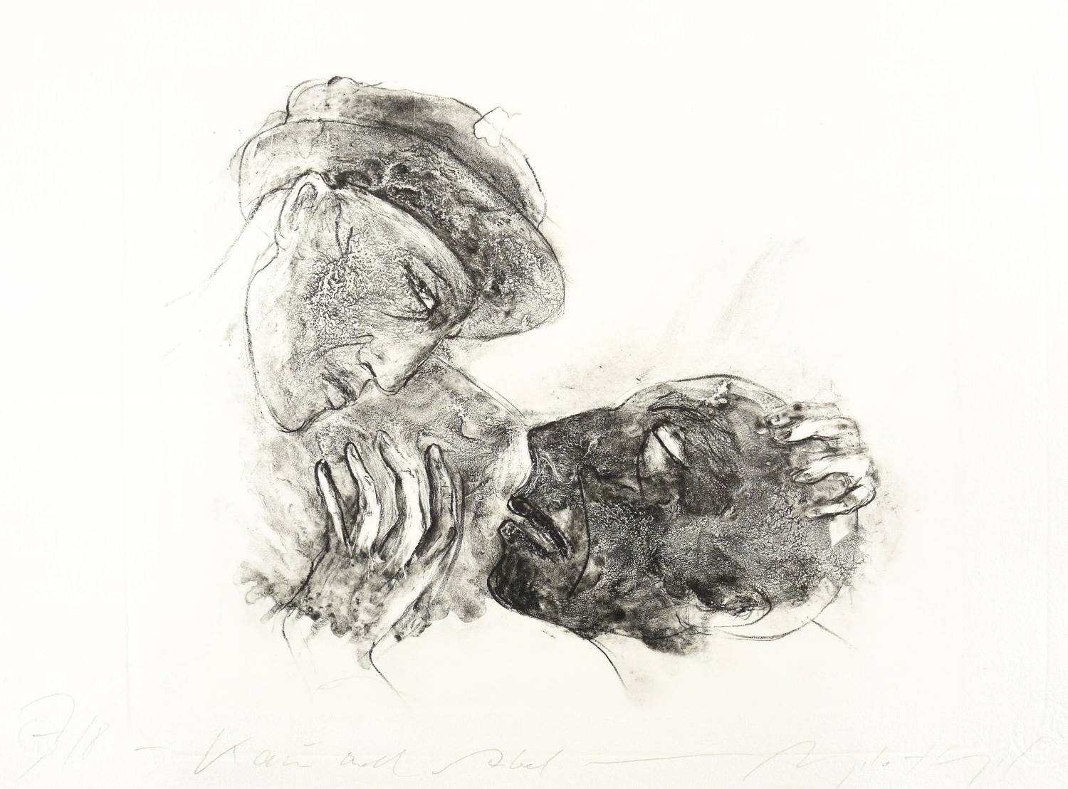 Um 2015. Algrafie / Pinsel- & Kreidealgrafie, in Schwarz, auf Hahnemühle-Bütten. – Originale Künstlergrafik, von Angela Hampel. – Auflage Exemplar Nr. 7/8. – 32,0 x 42,5 cm (Darstellung / Platte), 39 x 53,5 cm (Blatt).