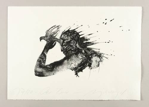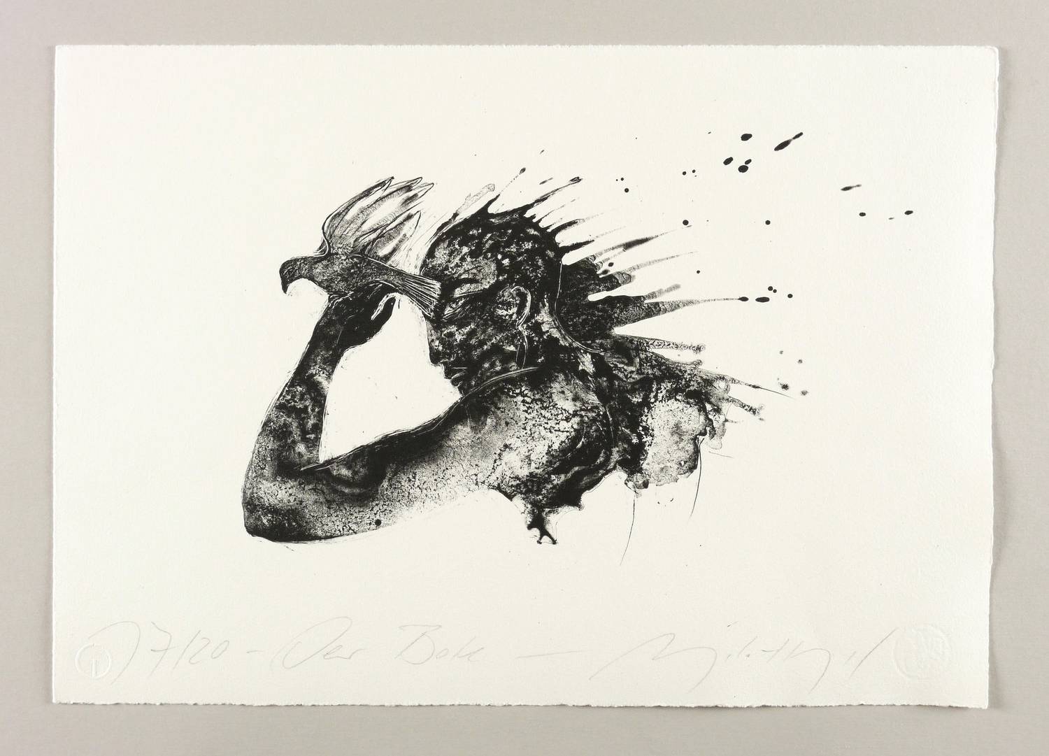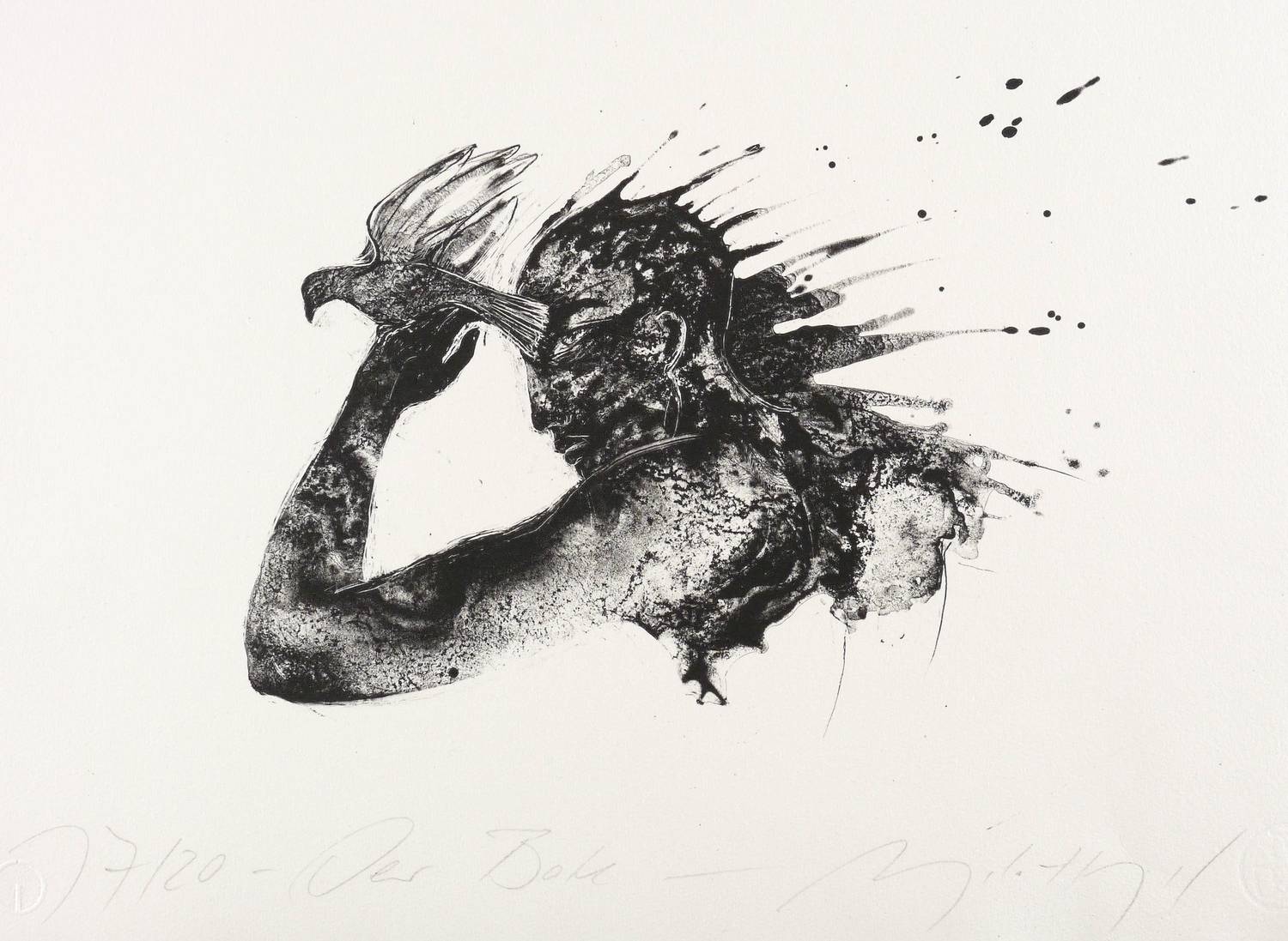 Um 2015. Algrafie / Pinselalgrafie, partiell geschabt, in Schwarz, auf Hahnemühle-Bütten. – Originale Künstlergrafik, von Angela Hampel. – Auflage Exemplar Nr. 17/20. – 25,0 x 37,0 cm (Darstellung), 35 x 49,5 cm (Blatt).