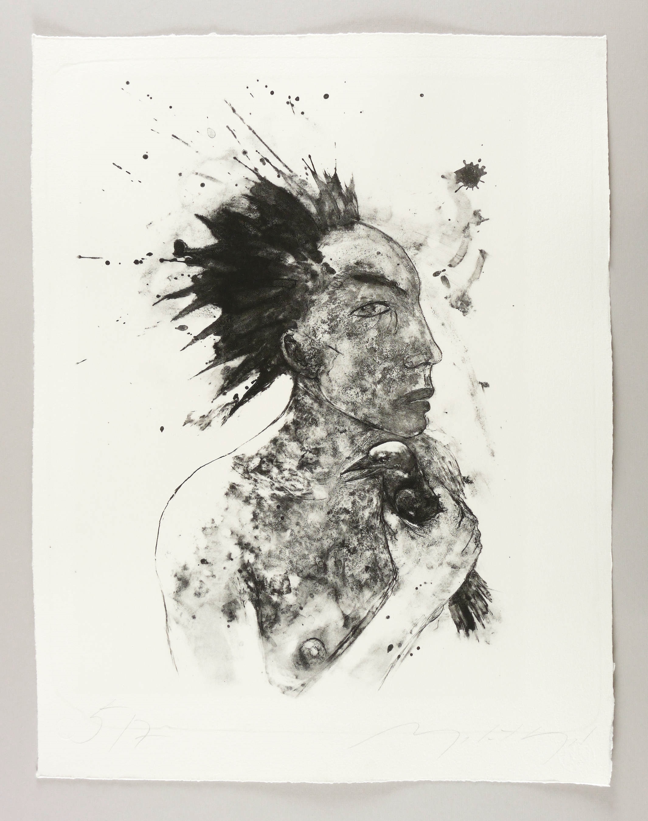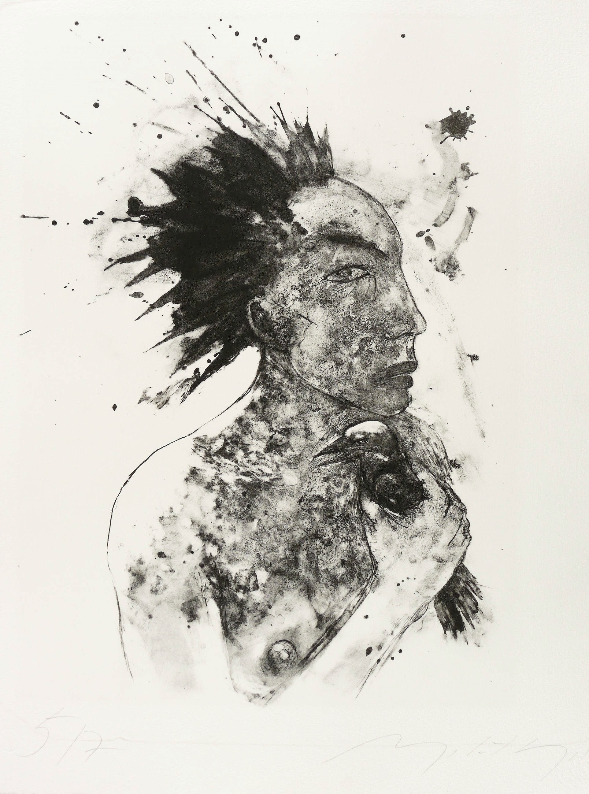 Um 2010. Algrafie / Pinselalgrafie, in Schwarz, auf hellchamois Hahnemühle. – Originale Künstlergrafik, von Angela Hampel. – Auflage Exemplar Nr. 5/7. – 64,5 x 50 cm (Darstellung / Blatt).