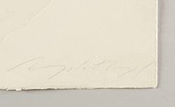 Rechts unten in Bleistift signiert: ″Angela Hampel″. Links Auflagenbezeichnung. Im Stein rechts oben Inschrift: ″Barbara Köhler / Angela Hampel″. Wasserzeichen. – Originalgrafisches Titelblatt zur Mappe ″Elb- Alb″. – Sehr guter Zustand.