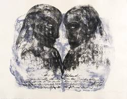 Angela Hampel (*1956 Räckelwitz, lebt und arbeitet in Dresden). Deutsche Malerin und Grafikerin. Lehre und Arbeit als Forstfacharbeiterin. 1977-82 Studium an der HfBK Dresden bei Jutta Damme und D. Büttner. Danach freischaffend. Mitbegründerin der Dresdner Sezession '89. Zahlreiche Einzelausstellungen u.a. in der Galerie Döbele. In ihren Figuren einen sich das Weibliche und das Männliche, das Menschliche und das Tierische, kämpfen gegen einander oder um einander - vital, agressiv und zärtlich zugleich.