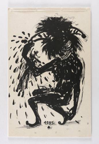 Angela Hampel (*1956 Räckelwitz, lebt und arbeitet in Dresden). Deutsche Malerin und Grafikerin. Lehre und Arbeit als Forstfacharbeiterin. 1977-82 Studium an der HfBK Dresden bei Jutta Damme und D. Büttner. Danach freischaffend. Mitbegründerin der Dresdner Sezession '89. Zahlreiche Einzelausstellungen u.a. in der Galerie Döbele. In ihren Figuren einen sich das Weibliche und das Männliche, das Menschliche und das Tierische, kämpfen gegen einander oder um einander - vital, agressiv und zärtlich zugleich.
