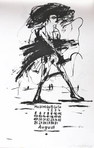 Alle Grafiken jeweils unten in Bleistift signiert. Innen im Rückenkarton nochmals Signatur und Auflagenbezeichnung. – Schöner Grafikkalender mit 12 Original- Lithografien. – Vollständig mit Titelblatt und allen Originalgrafiken. Sehr guter Zustand.