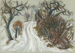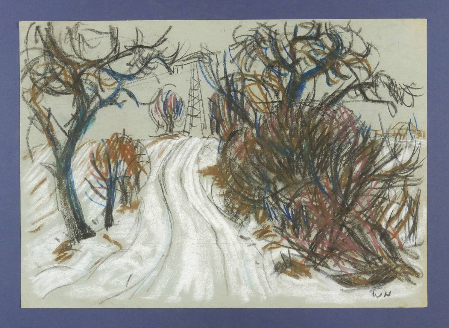 Rechts unten monogrammiert. Verso in Kugelschreiber betitelt. – Reißzwecklöchlein. Die Ecekn mit kleinen Eselsohren. Am oberen Blattrand kliner Einriß. Im unteren Drittel horizontale Falzspur. Verso Reste einer ehemaligen Montierung. Insgesamt mäßig gut erhalten.