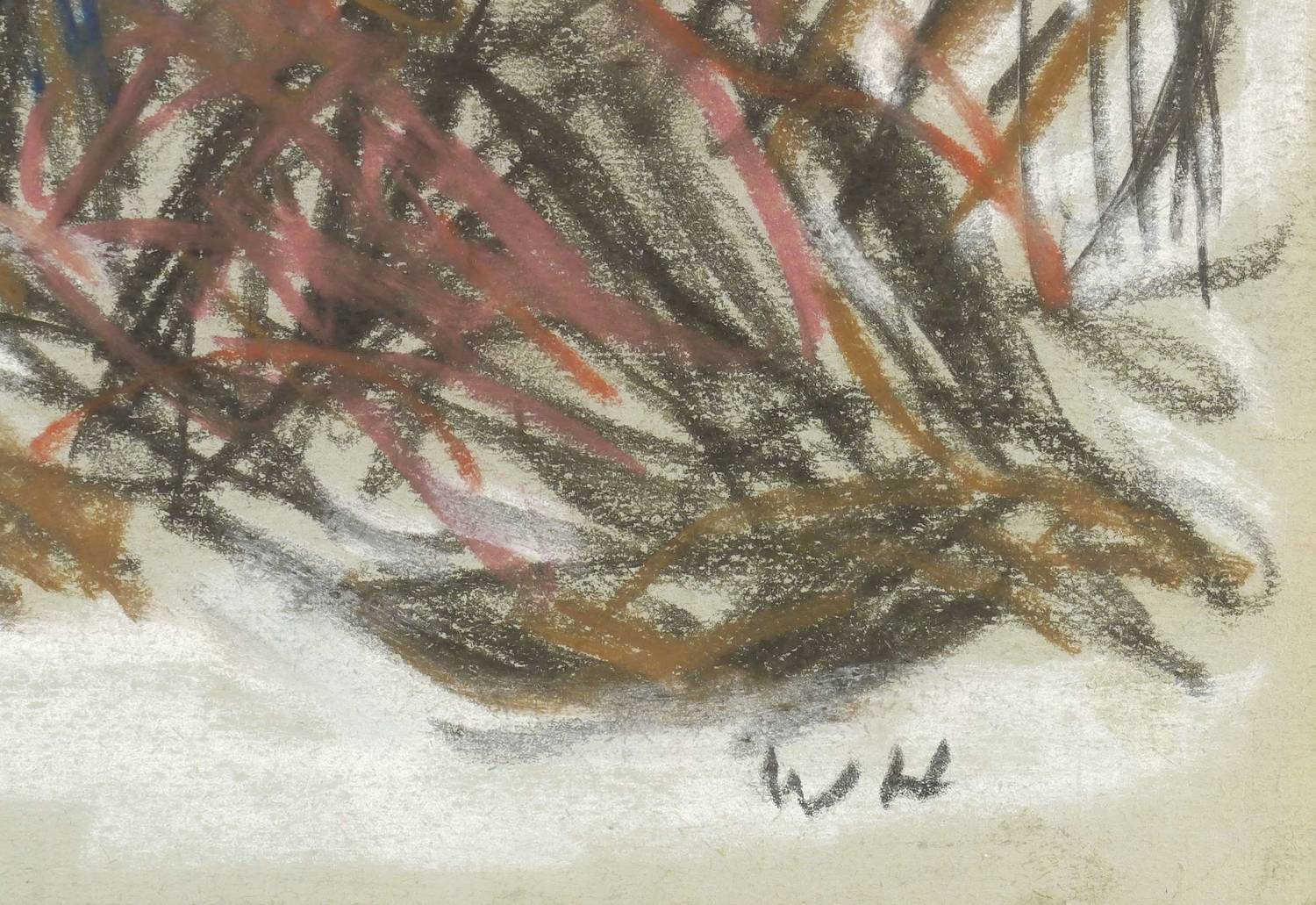 Um 1975. Zeichnung / Pastellkreide, auf hellgrauem Papier. – Originale Künstlergrafik, von Werner Haselhuhn. – Unikat. – 29,7 x 41,8 cm (Darstellung / Blatt).