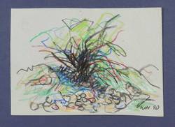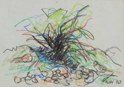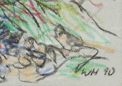 1990. Zeichnung / Pastellkreide, auf hellgrauem Karton. – Originale Künstlergrafik, von Werner Haselhuhn. – Unikat. – 14,0 x 19,7 cm (Darstellung / Blatt).