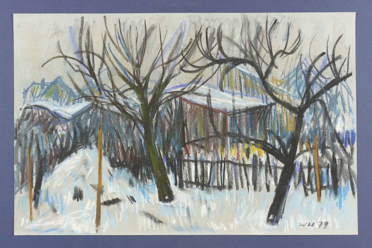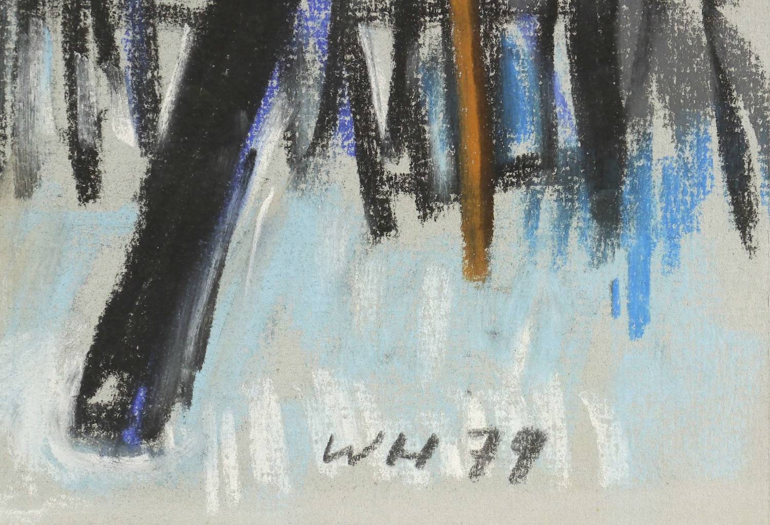 1979. Zeichnung / Pastellkreide, auf hellgrauem Büttenpapier. – Originale Künstlergrafik, von Werner Haselhuhn. – Unikat. – 31,0 x 47,5 cm (Darstellung / Blatt).