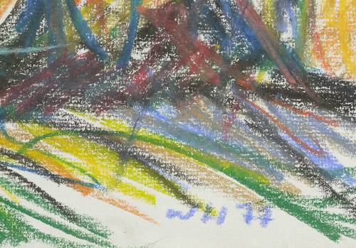 1977. Zeichnung / Pastellkreide, auf hellgrauem Büttenpapier. – Originale Künstlergrafik, von Werner Haselhuhn. – Unikat. – 32,5 x 49,0 cm (Darstellung / Blatt).
