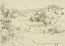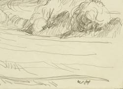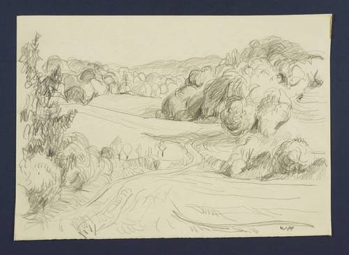 Rechts unten in Bleistift monogrammiert. – An den Ecken mit Kleber auf Trägerpapier montiert. Insgesamt guter Gesamtzustand.