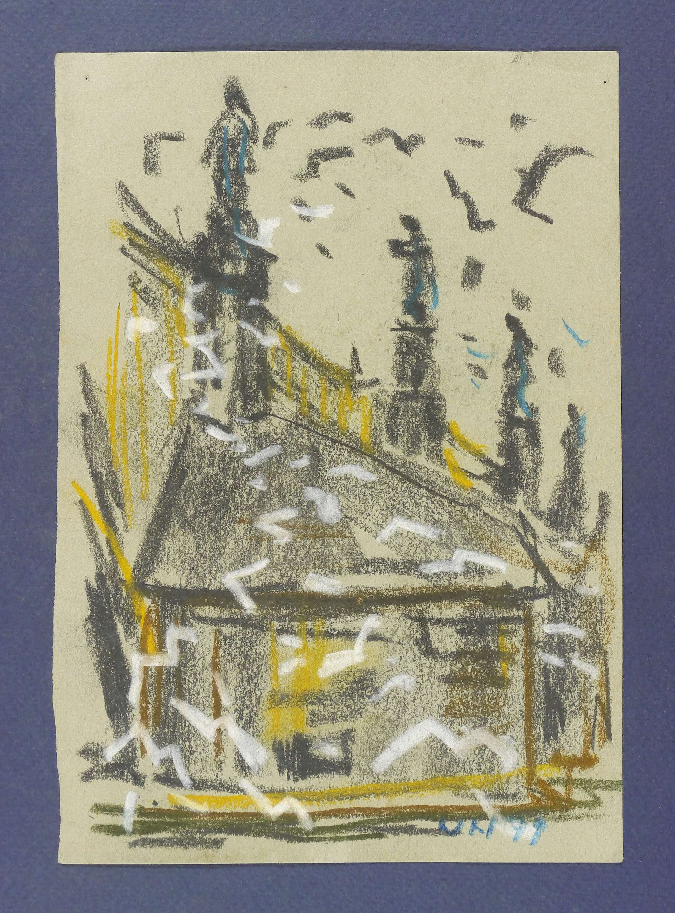 Rechts unten signiert und datiert. Verso in Bleistift betitelt. – In den Ecken originale Reißzwecklöchlein. Die Ecken minimal bestoßen. Guter Gesamtzustand.