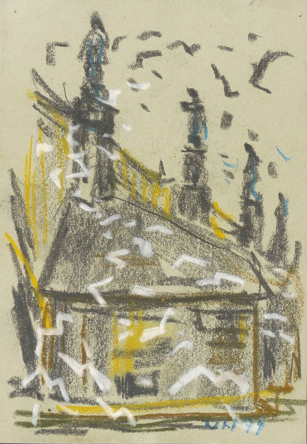 1979. Zeichnung / Pastellkreide, auf hellgrauem Büttenpapier. – Originale Künstlergrafik, von Werner Haselhuhn. – Unikat. – 21,0 x 14,5 cm (Darstellung / Blatt).