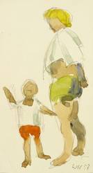Haselhuhn, Werner. – „Mutter mit Kind am Strand”.