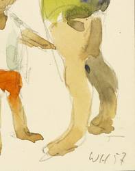 1957. Aquarell, über Bleistift. – Originale Künstlergrafik, von Werner Haselhuhn. – 17,0 x 9,5 cm (Darstellung / Blatt).