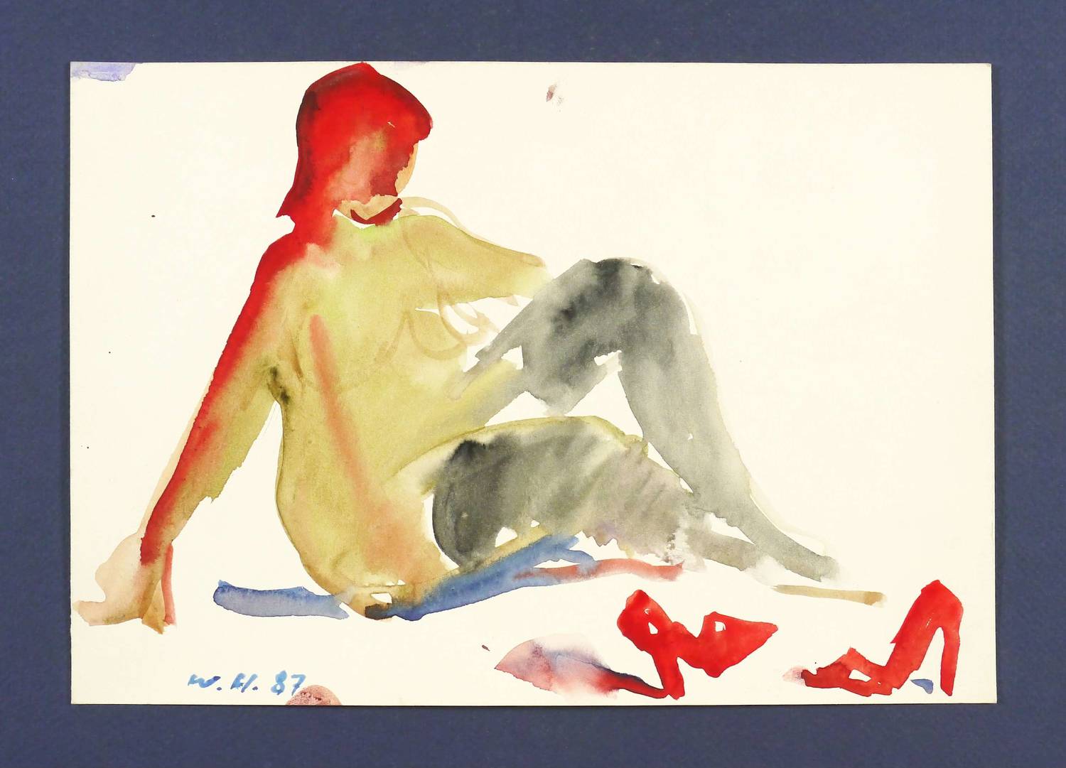 1987. Aquarell, auf hellgelbem Velinkarton. – Originale Künstlergrafik, von Werner Haselhuhn. – Unikat. – 18,0 x 26,0 cm (Darstellung / Blatt).