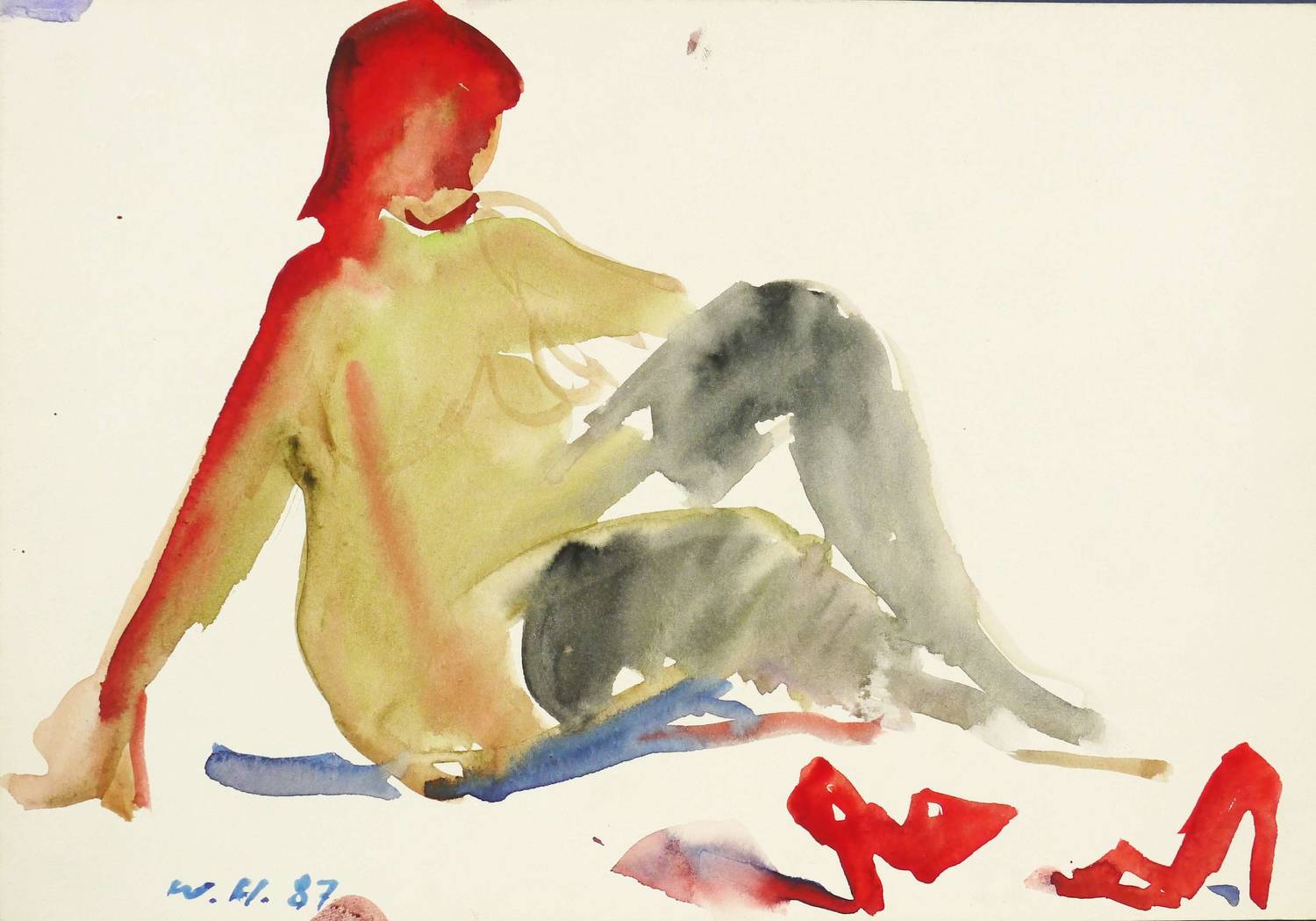 Haselhuhn, Werner. – „Akt mit schwarzen Strümpfen”.