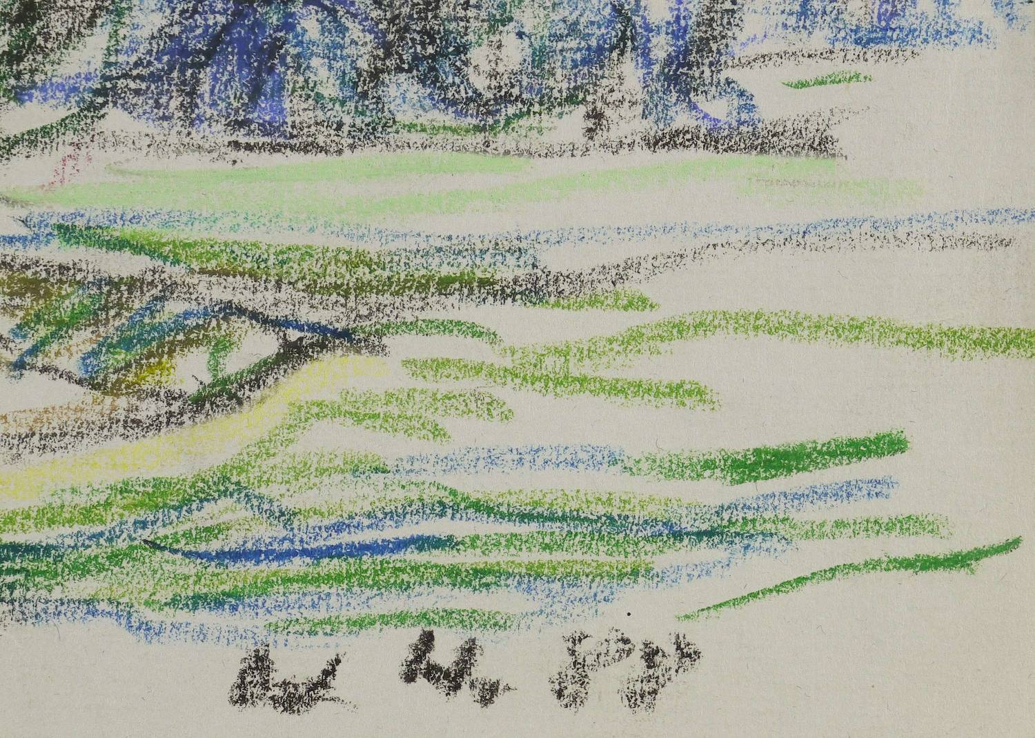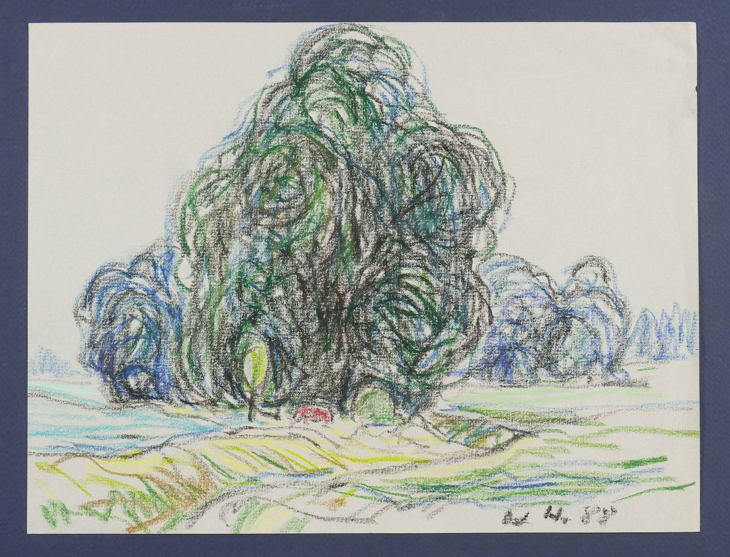 1988. Zeichnung / Pastellkreide, auf hellgrauem Büttenpapier. – Originale Künstlergrafik, von Werner Haselhuhn. – Unikat. – 23,0 x 30,5 cm (Darstellung / Blatt).