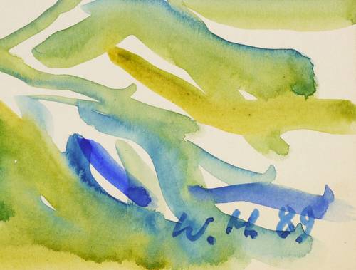 1989. Aquarell, auf hellchamois Velinkarton. – Originale Künstlergrafik, von Werner Haselhuhn. – Unikat. – 22,0 x 28,5 cm (Darstellung / Blatt).