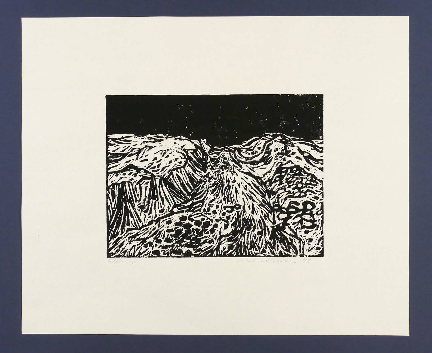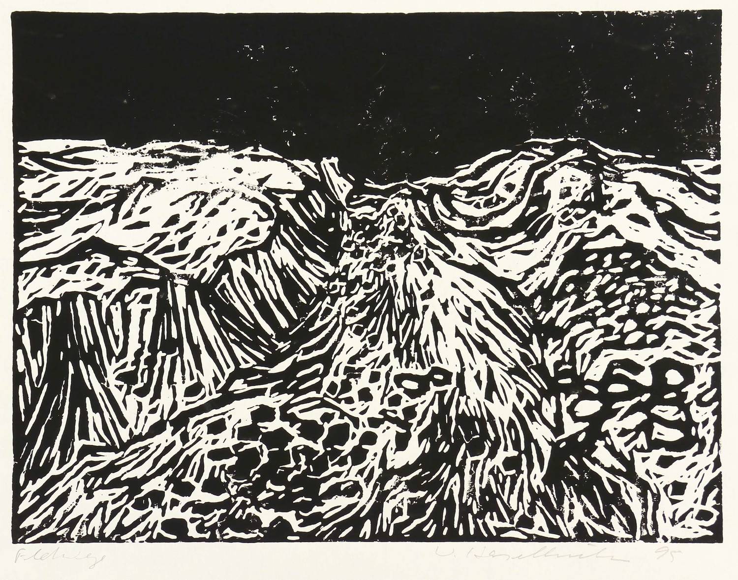 1995. Holzschnitt, in Schwarz, auf Japanbütten. – Originale Künstlergrafik, von Werner Haselhuhn. – 24,0 x 32,0 cm (Darstellung / Druckstock), 47 x 58 cm (Blatt).
