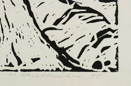1995. Holzschnitt, in Schwarz, auf Japanbütten. – Originale Künstlergrafik, von Werner Haselhuhn. – 24,0 x 32,0 cm (Darstellung / Druckstock), 47 x 58 cm (Blatt).