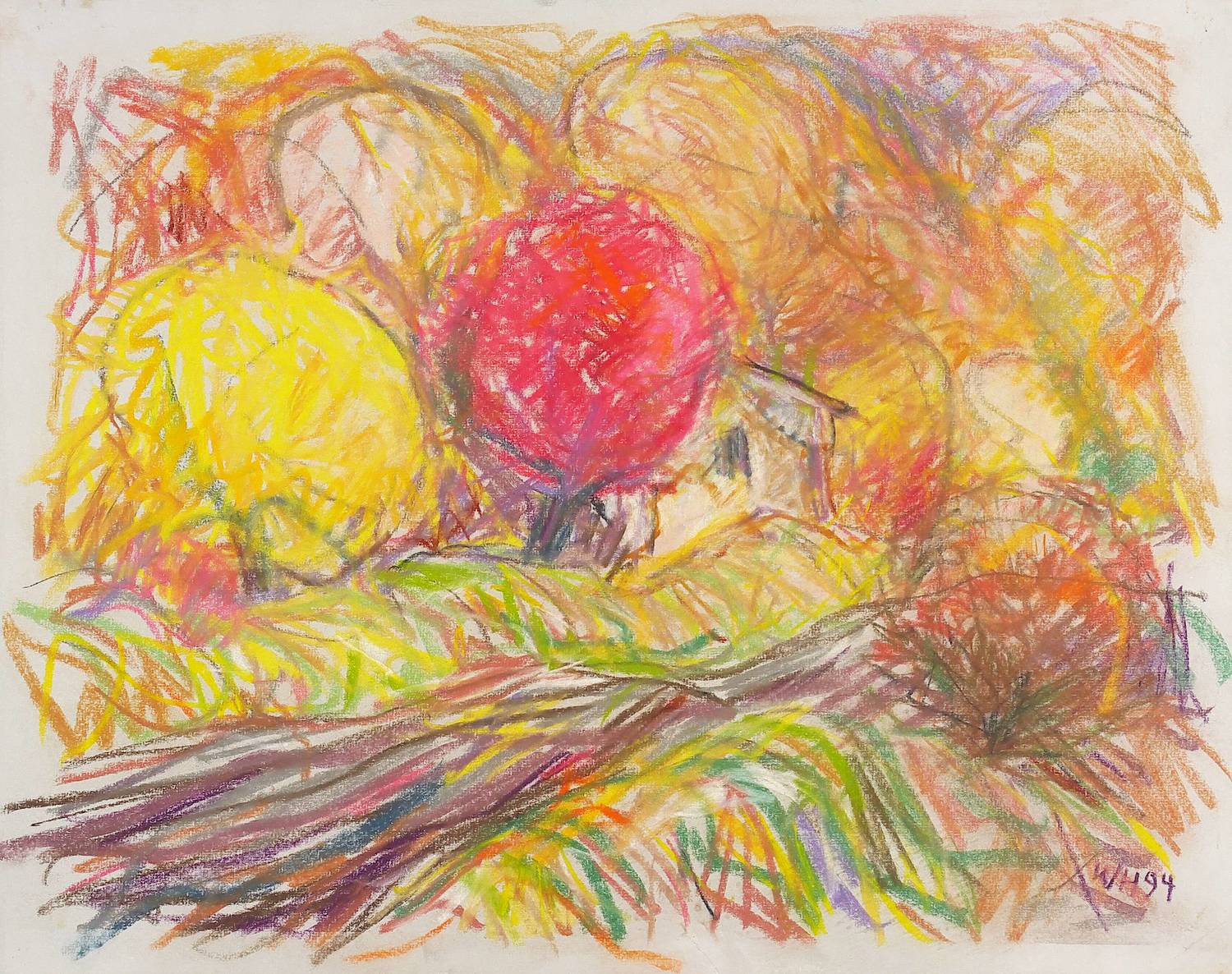 1994. Zeichnung / Pastellkreide, auf hellem Velin. – Originale Künstlergrafik, von Werner Haselhuhn. – Unikat. – 50,5 x 63,5 cm (Darstellung / Blatt).