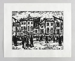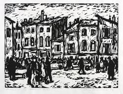 Rechts unten in Bleistift signiert und datiert: ″W. Haselhuhn 92″. Links betitelt: ″Provence VIII Häuser in Arles″. – Aus einer Holzschnitt-Folge zur Provence. – Sehr gutes Exemplar.