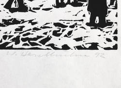 1992. Holzschnitt, in Schwarz, auf hellem Japanpapier. – Originale Künstlergrafik, von Werner Haselhuhn. – 24,1 x 32,1 cm (Darstellung / Druckstock), 35 x 43 cm (Blatt).