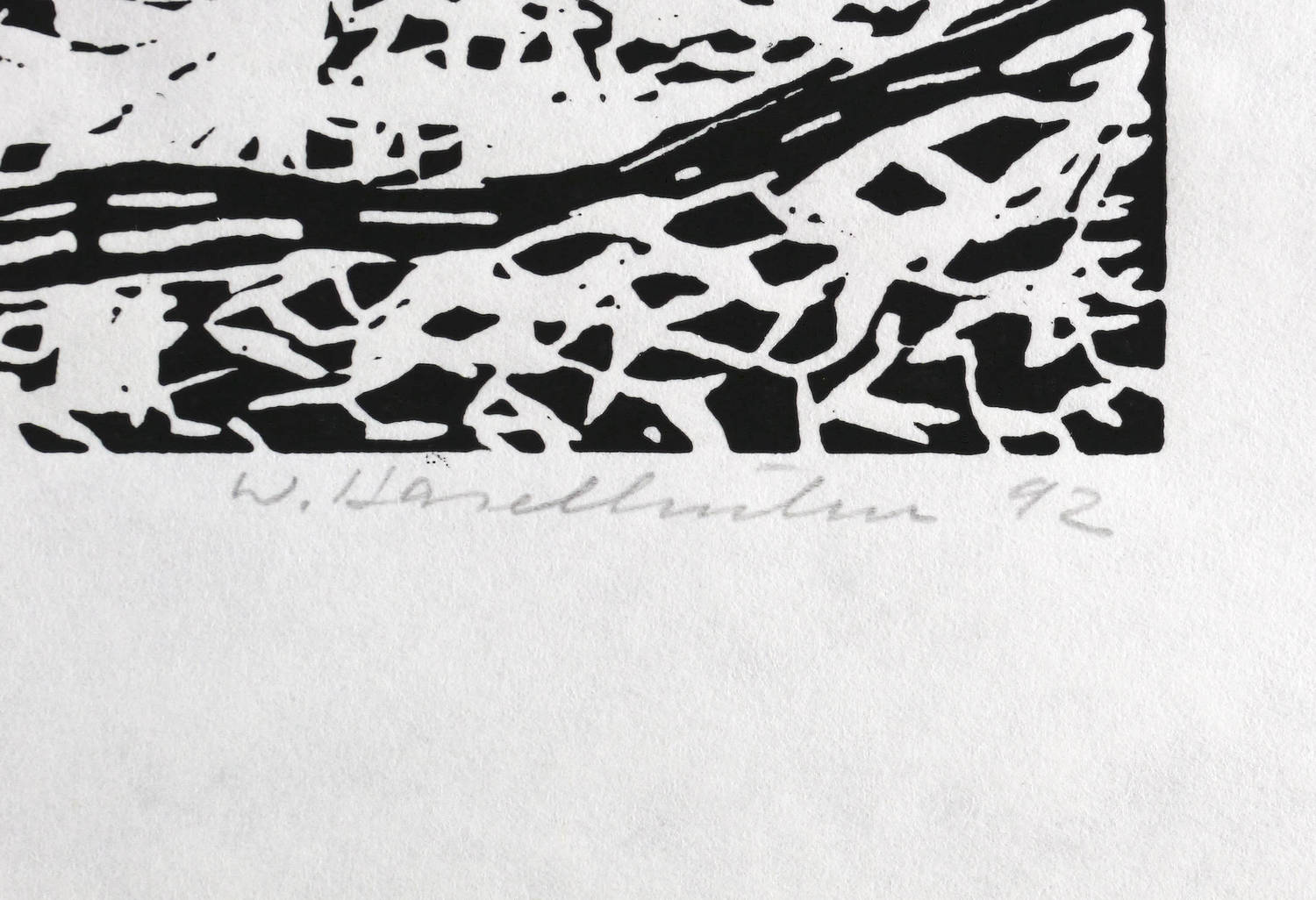 1992. Holzschnitt, in Schwarz, auf hellem Japanpapier. – Originale Künstlergrafik, von Werner Haselhuhn. – 32,2 x 24,1 cm (Darstellung / Druckstock), 43 x 35 cm (Blatt).