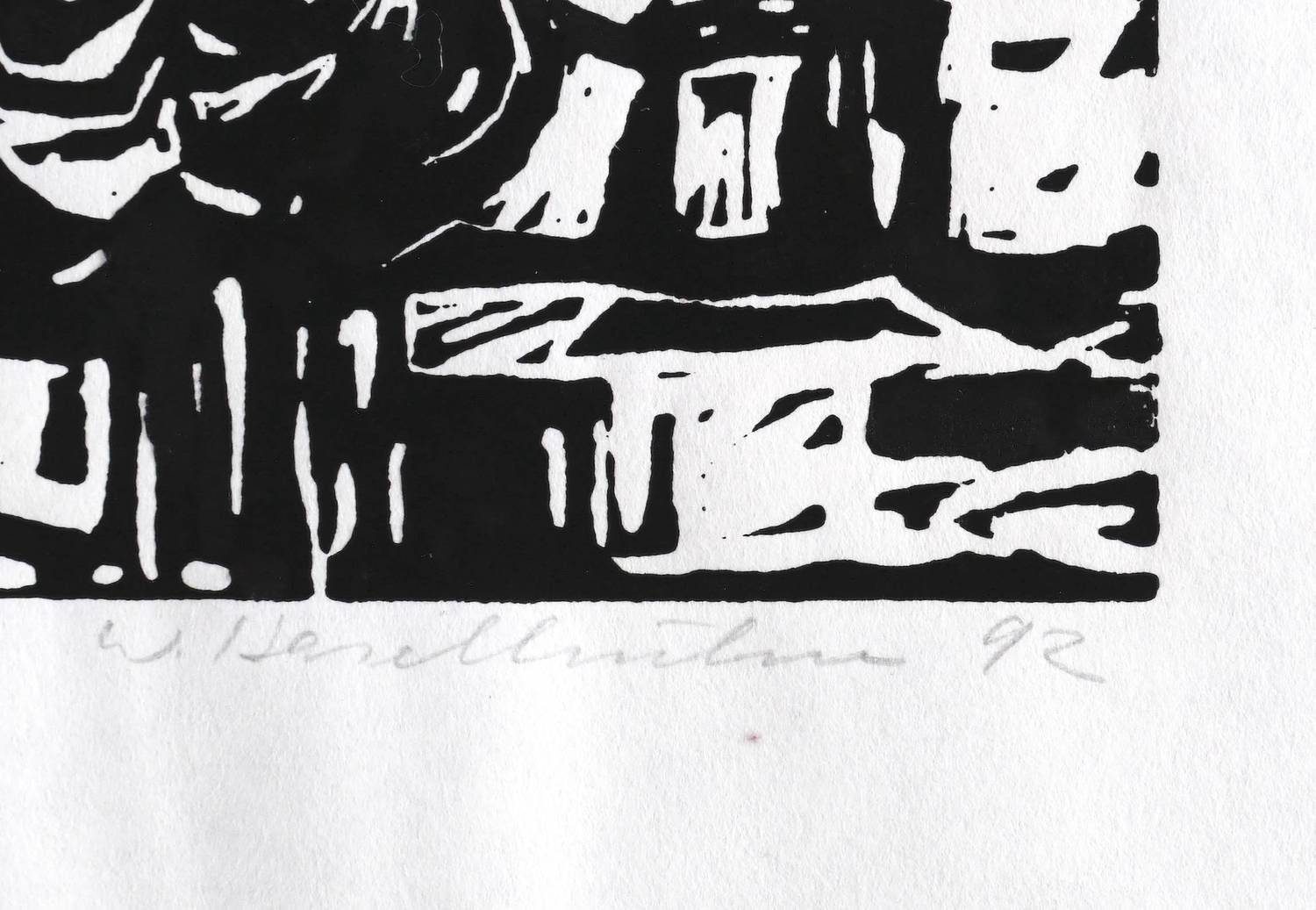 1992. Holzschnitt, in Schwarz, auf hellem Japanpapier. – Originale Künstlergrafik, von Werner Haselhuhn. – 24,1 x 32,1 cm (Darstellung / Druckstock), 35 x 43 cm (Blatt).