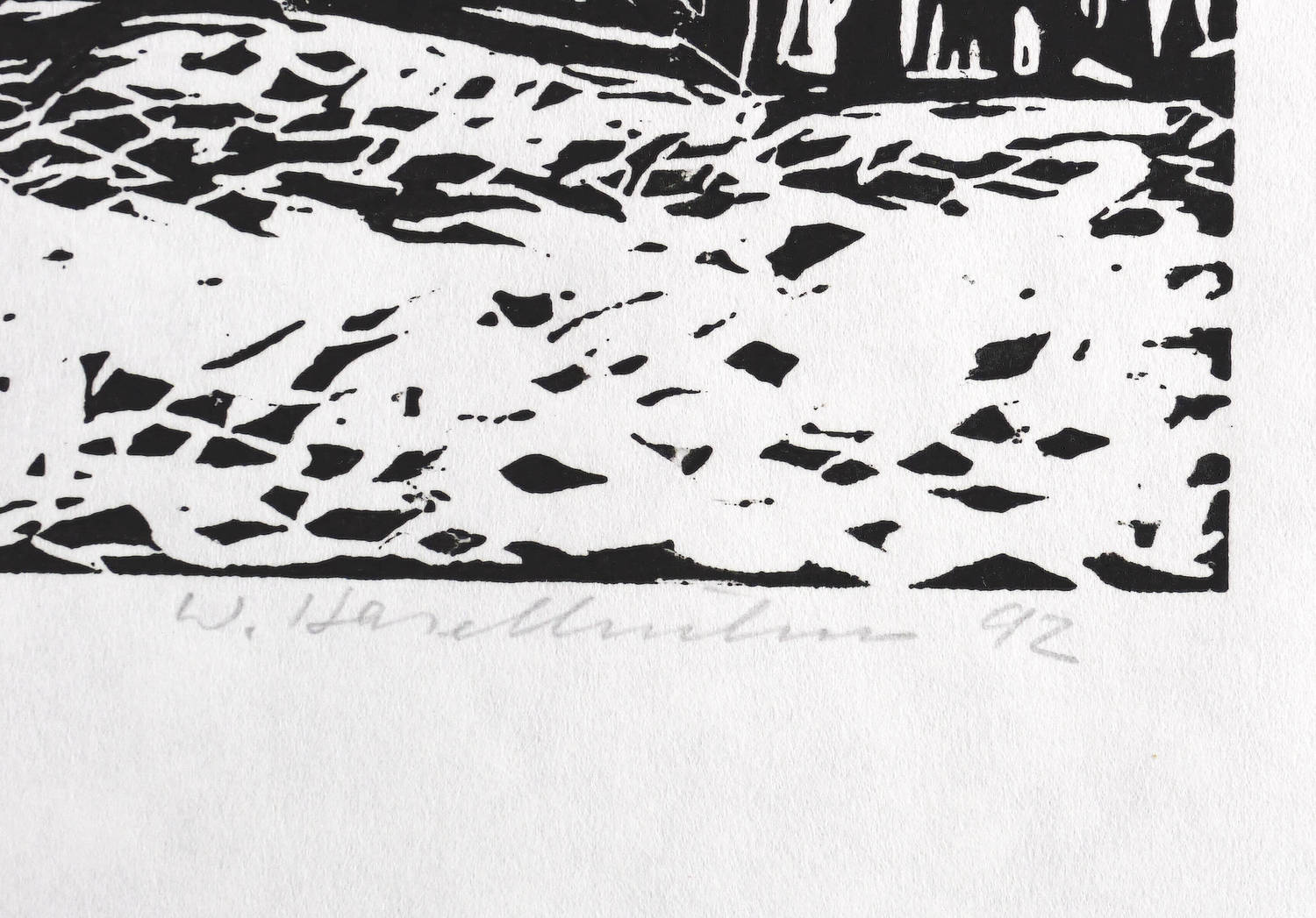 1992. Holzschnitt, in Schwarz, auf hellem Japanpapier. – Originale Künstlergrafik, von Werner Haselhuhn. – 24,1 x 32,1 cm (Darstellung / Druckstock), 35 x 43 cm (Blatt).