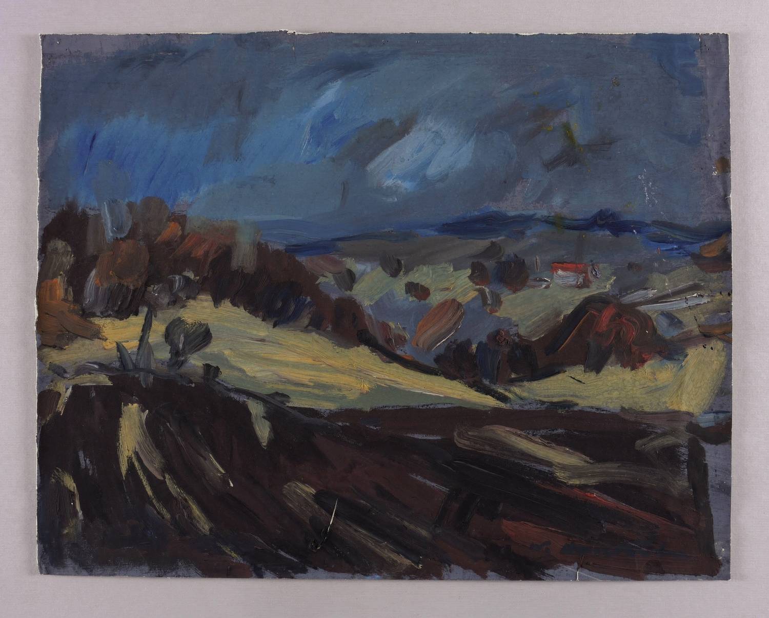 1950-1960. Gouache, auf festem hellgelbem Velinkarton. – Originale Künstlergrafik, von Werner Haselhuhn. – Unikat. – 37,5 x 48,0 cm (Darstellung / Blatt).