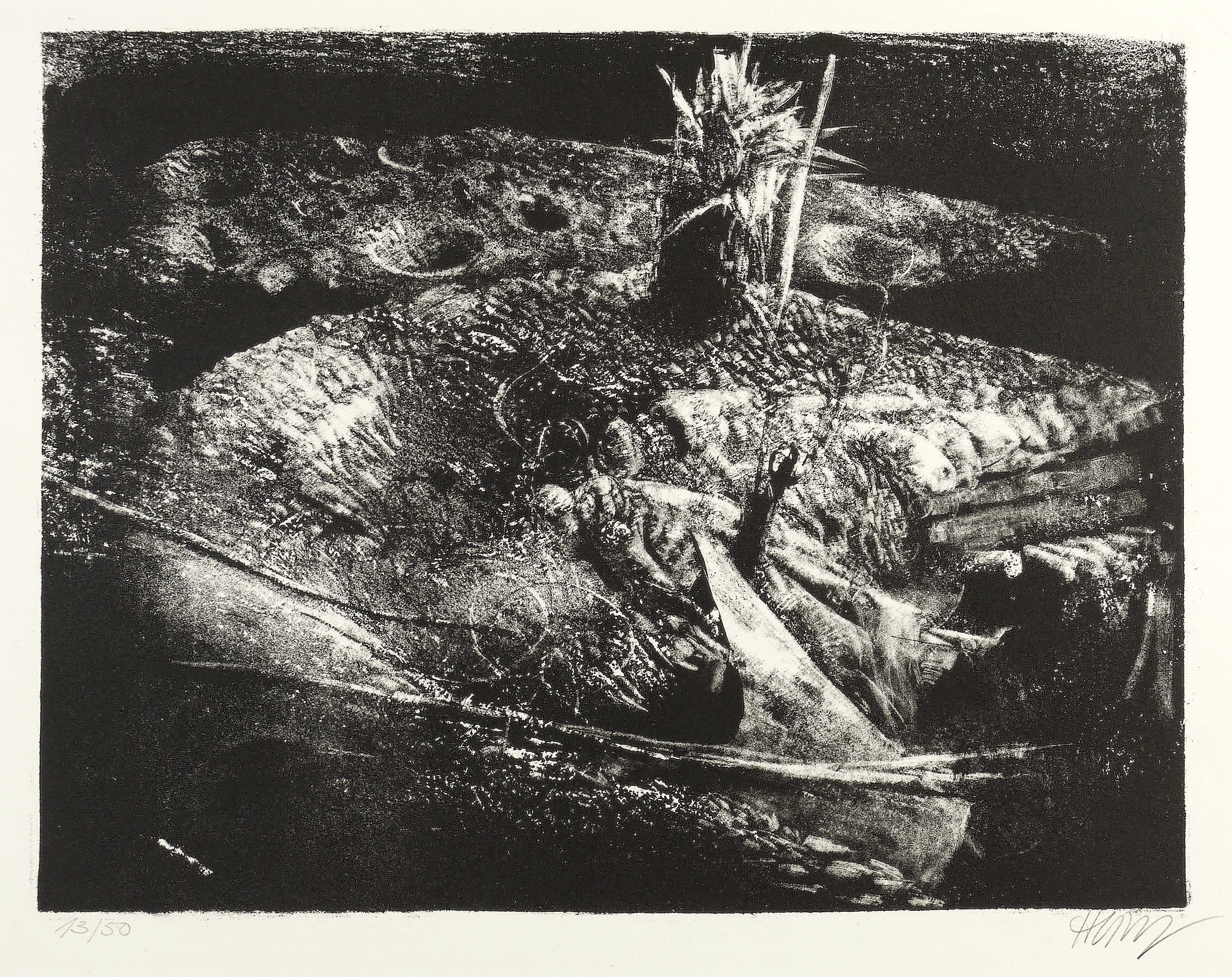 1971/1972. Lithografie / Kreide- & Pinsellithografie, in Schwarz, auf Hahnemühle-Bütten. – Originale Künstlergrafik, von Bernhard Heisig. – Auflage Exemplar Nr. 13/50. – 31,6 x 40,8 cm (Darstellung / Druckbild), 39,5 x 56,5 cm (Blatt).