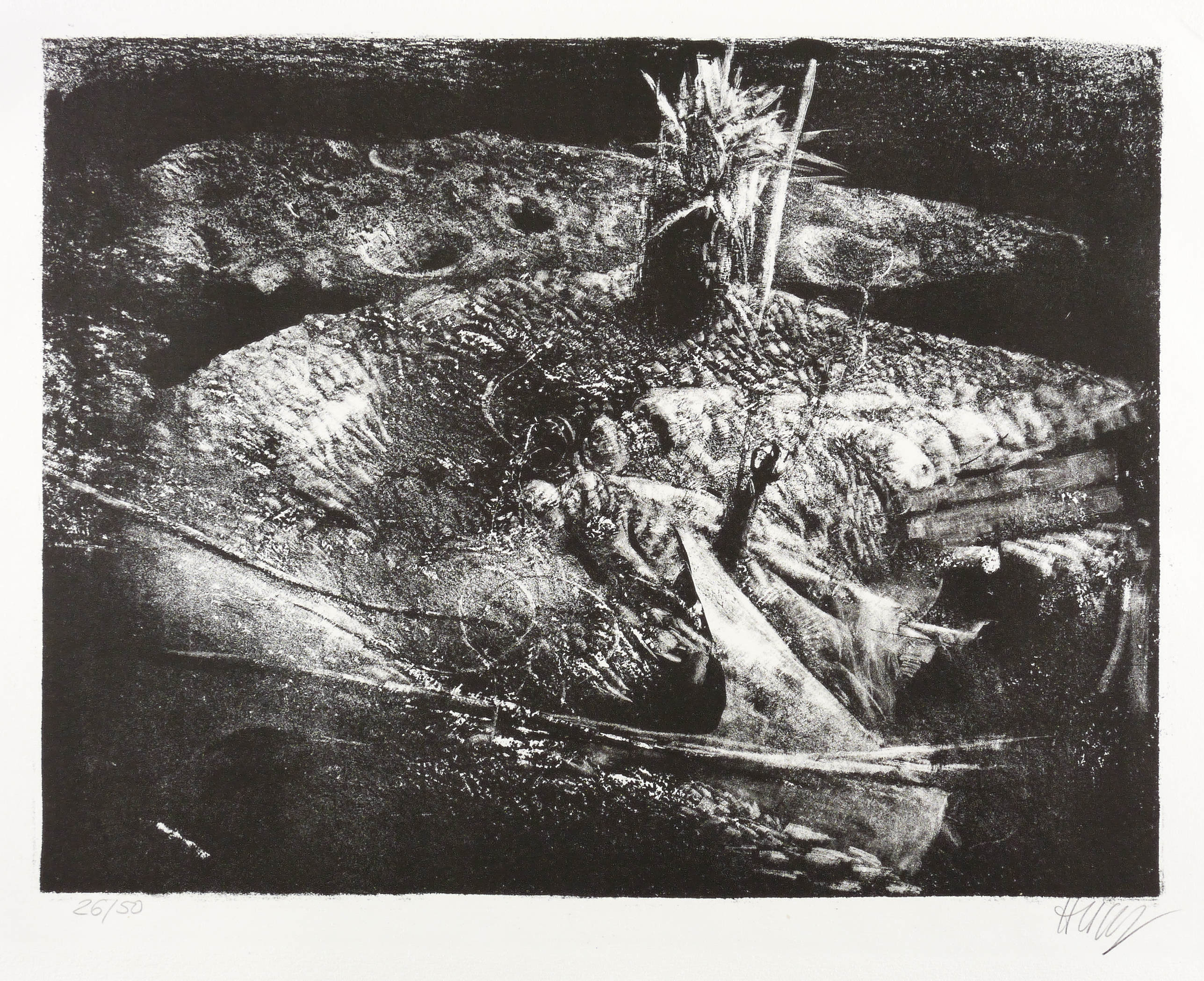 1971/1972. Lithografie / Kreide- & Pinsellithografie, in Schwarz, auf schwerem hellchamois Hahnemühle-Bütten. – Originale Künstlergrafik, von Bernhard Heisig. – Auflage Exemplar Nr. 26/50. – 31,7 x 40,9 cm (Darstellung / Druckbild), 40 x 57 cm (Blatt).