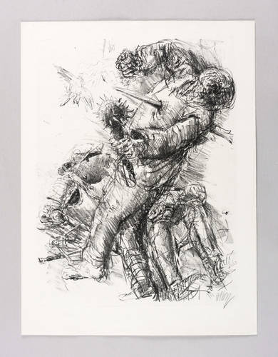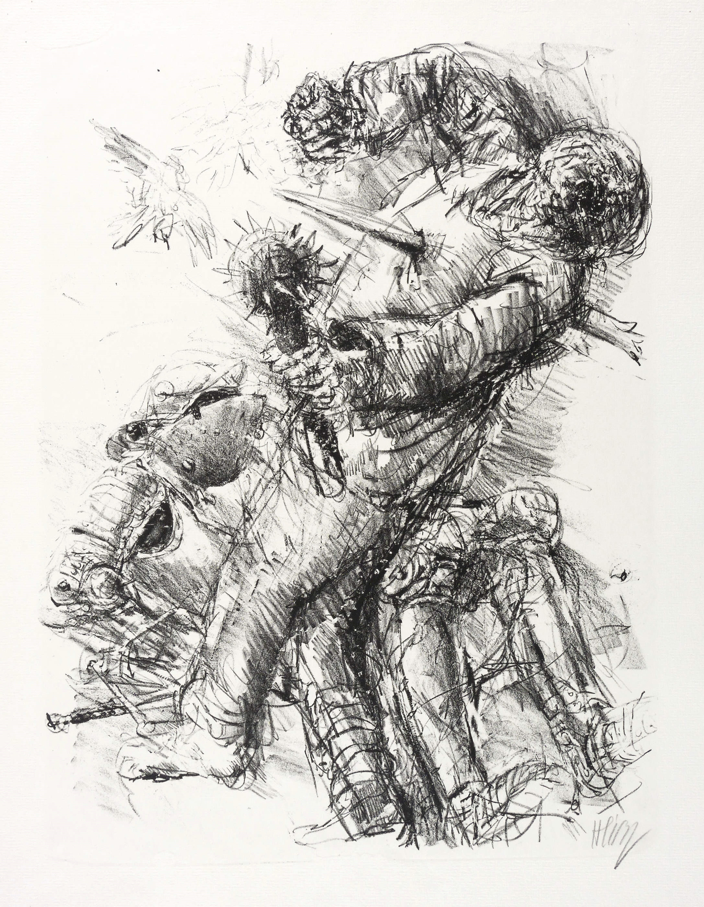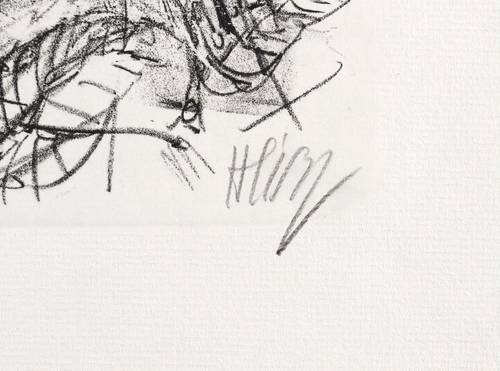 1975. Lithografie / Kreidelithografie, in Schwarz, auf festem hellchamois Maschinenbütten. – Originale Künstlergrafik, von Bernhard Heisig. – 40,9 x 30,6 cm (Darstellung / Druckbild), 48 x 36 cm (Blatt).