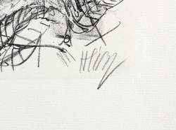 Bernhard Heisig (1925 Breslau - 2011 Strohdehne). Deutscher Maler und Grafiker. Einer der wichtigsten Repräsentanten der DDR-Kunst. Bildet mit Werner Tübke und Wolfgang Mattheuer die berühmte Trias der Leipziger Schule. Ab 1954-68 Dozent an der Hochschule für Grafik und Buchkunst in Leipzig. Dort 1961 zum Professor ernannt und als Rektor gewählt. Von 1956-59 Vorsitzender des Verbandes Bildender Künstler (VBK) im Bezirk Leipzig. 1976 Rückkehr an die Hochschule. Zu seinen Schülern gehören u.a. Hubertus Giebe, Arno Rink und Neo Rauch.