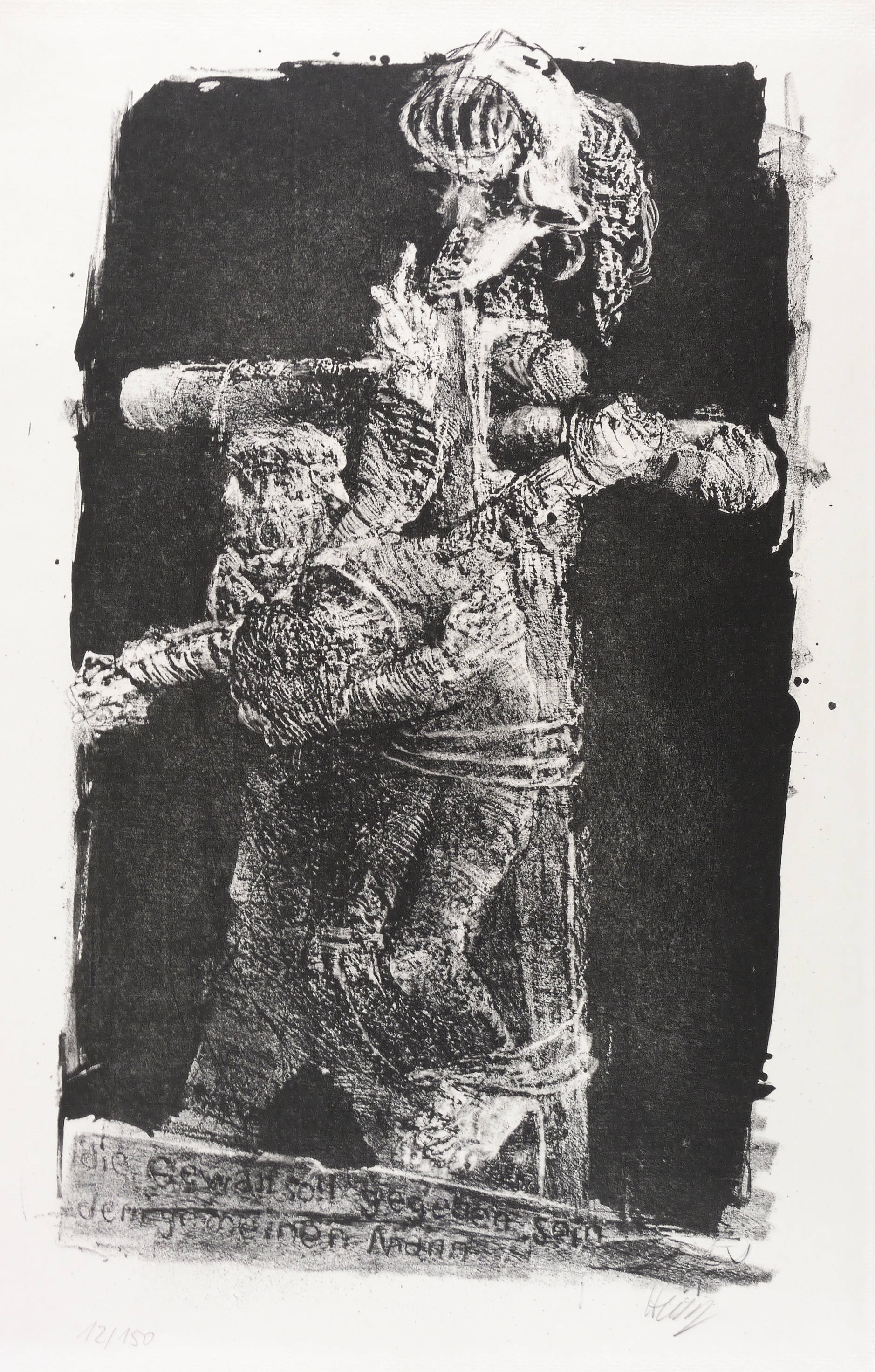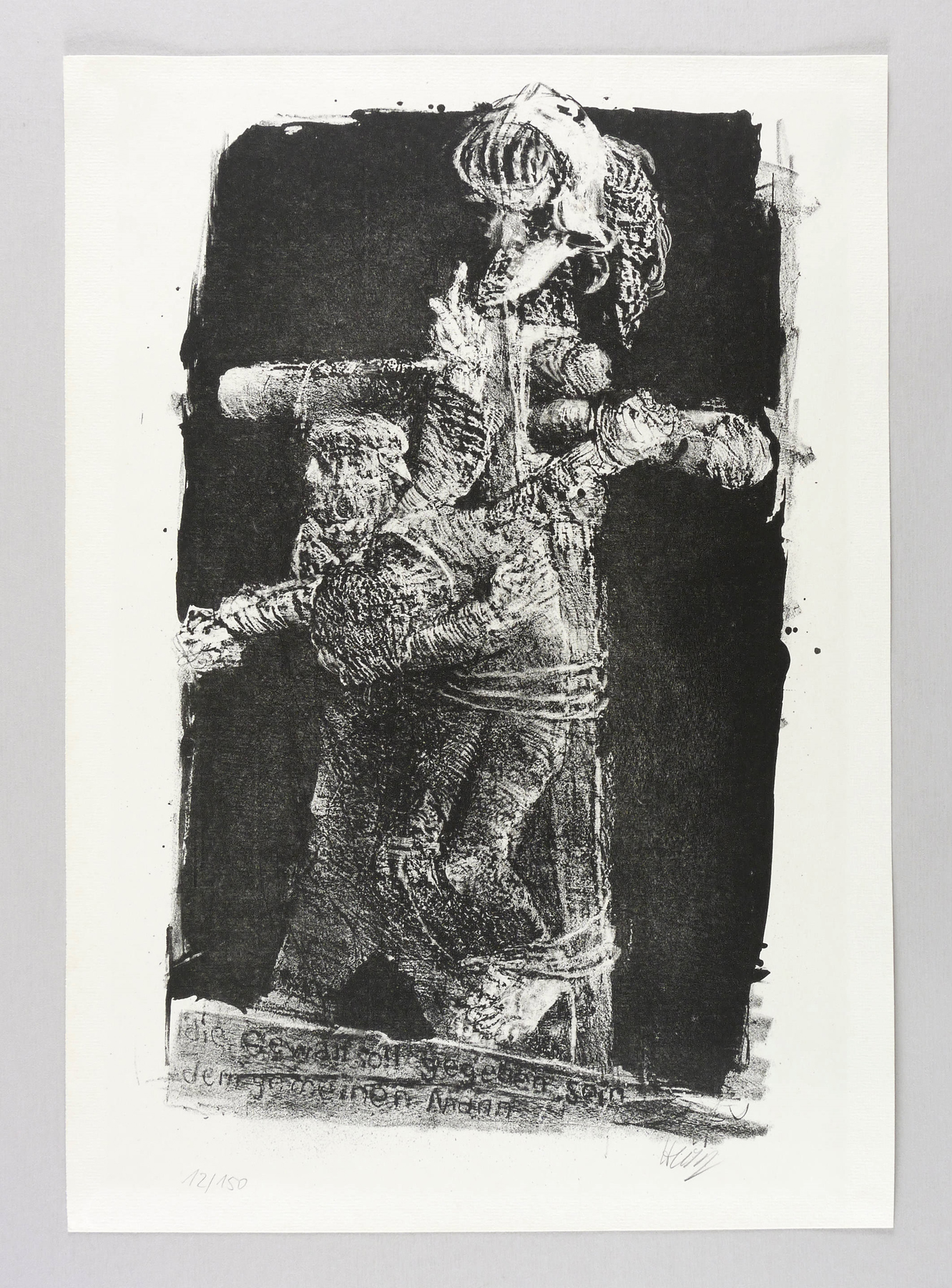 1974. Lithografie / Kreidelithografie, in Schwarz, auf festem hellchamois Maschinenbütten. – Originale Künstlergrafik, von Bernhard Heisig. – Auflage Exemplar Nr. 12/150. – 45,2 x 27,9 cm (Darstellung / Druckbild), 50 x 35 cm (Blatt).