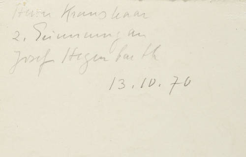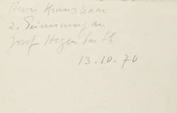 Zesch F IV 672. – Verso in Bleistift Widmung und Signatur: ″Herrn Kraushaar z. Erinnerung an Josef Hegenbarth″. Dazu weitere diverse Notationen in Bleistift. – Sehr guter Zustand.