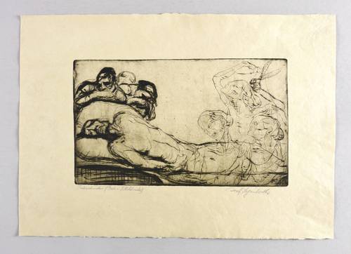 Lewinger 163. – Rechts unten in Bleistift signiert: ″Josef Hegenbarth″. Links Titel und Auflagenbezeichnung: ″Todesstunde (Probe u Selbstdruck)″. – Provenienz: Sammlung Dr. Ingrid und Prof. Dr. Albrecht Scholz, Dresden. – Sehr guter Zustand.