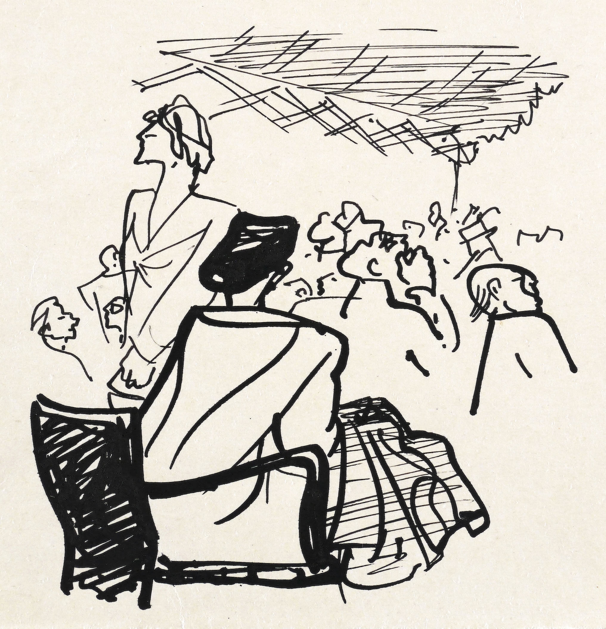 Um 1954. Zeichnung / Federzeichnung, in schwarzer Tusche, auf glattem hellgelbem Karton. – Originale Künstlergrafik, von Josef Hegenbarth. – Unikat. – 12,2 x 11,5 cm (Darstellung), 13,7 x 13,7 cm (Blatt).