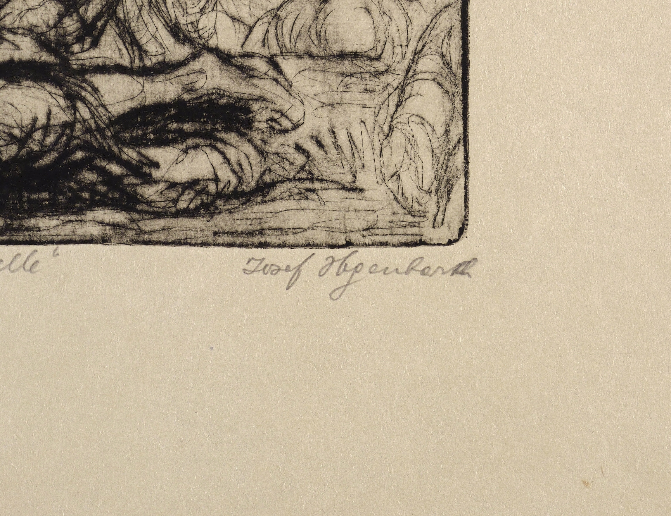 Lewinger 8. – Rechts unten in Bleistift signiert: ″Josef Hegenbarth″. Links Titel: ″Illustr z 'Droben stehet die Kapelle'″. – Zu dem Gedicht ″Die Kapelle″ von Ludwig Uhland aus dem Jahr 1805: ″Die Kapelle // Droben stehet die Kapelle, / Schauet still in’s Thal hinab, / Drunten singt bei Wies’ und Quelle / Froh und hell der Hirtenknab’. // Traurig tönt das Glöcklein nieder, / Schauerlich der Leichenchor; / Stille sind die frohen Lieder, / Und der Knabe lauscht empor. // Droben bringt man sie zu Grabe, / Die sich freuten in dem Thal; / Hirtenknabe! Hirtenknabe! / Dir auch singt man dort einmal.″. – In den Blattecken bisweilen leichte Lagerspuren. Guter Zustand.